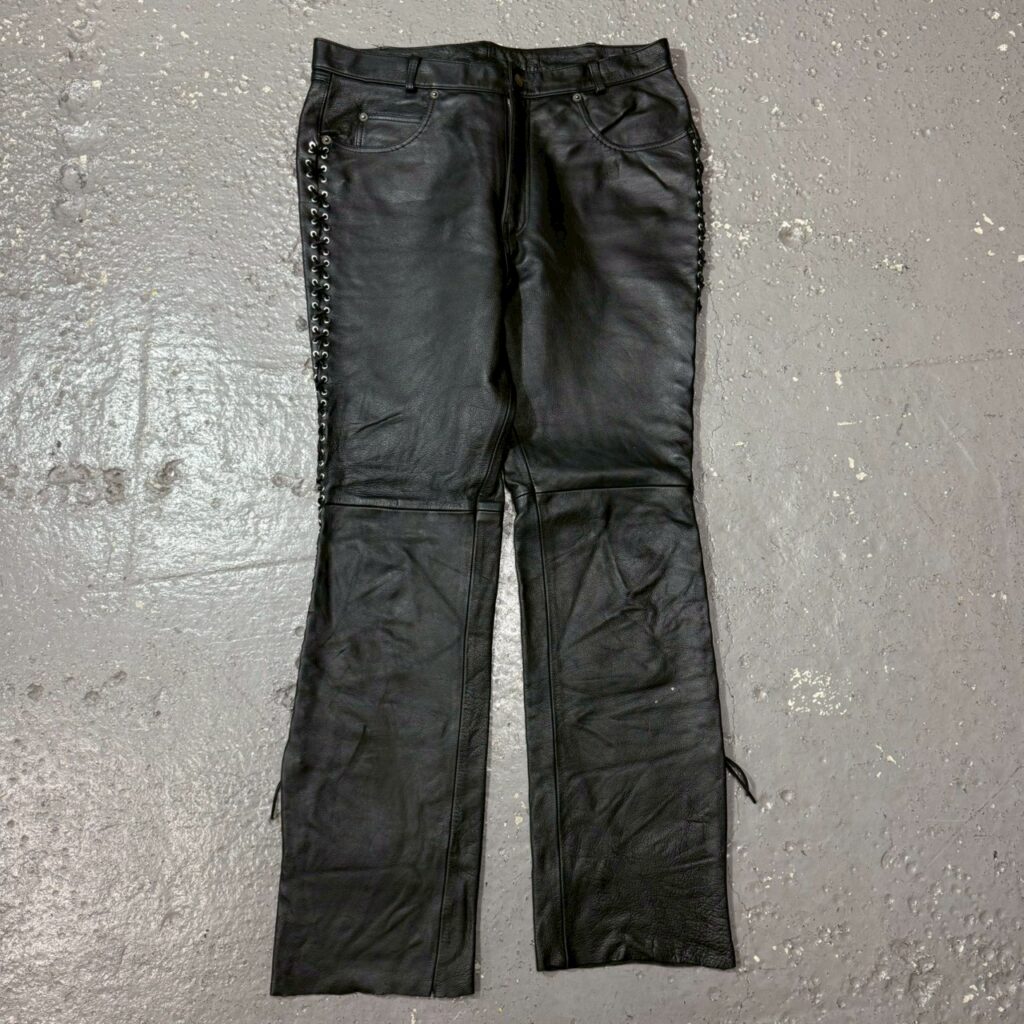 サイドレースアップのレザーパンツ