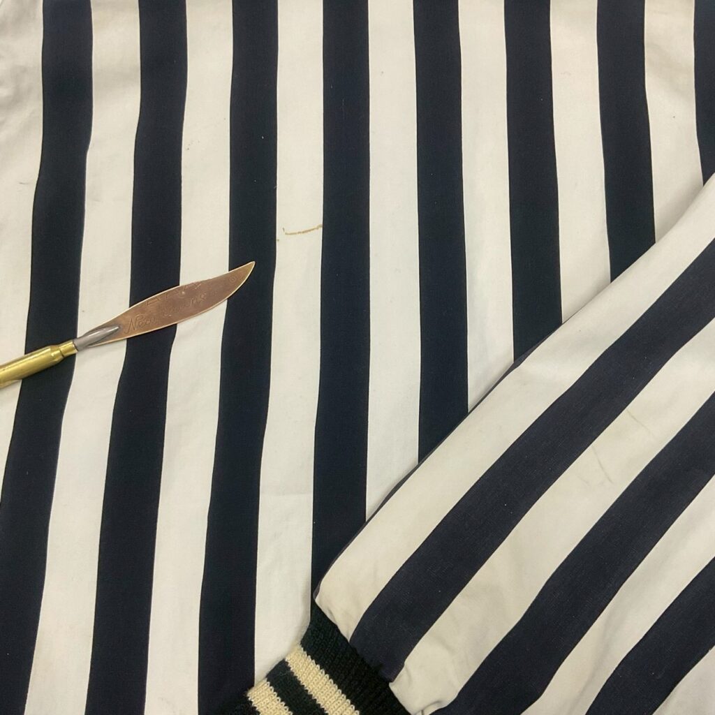 リブにチェックの切り替え、隠れたスラッシュポケットと