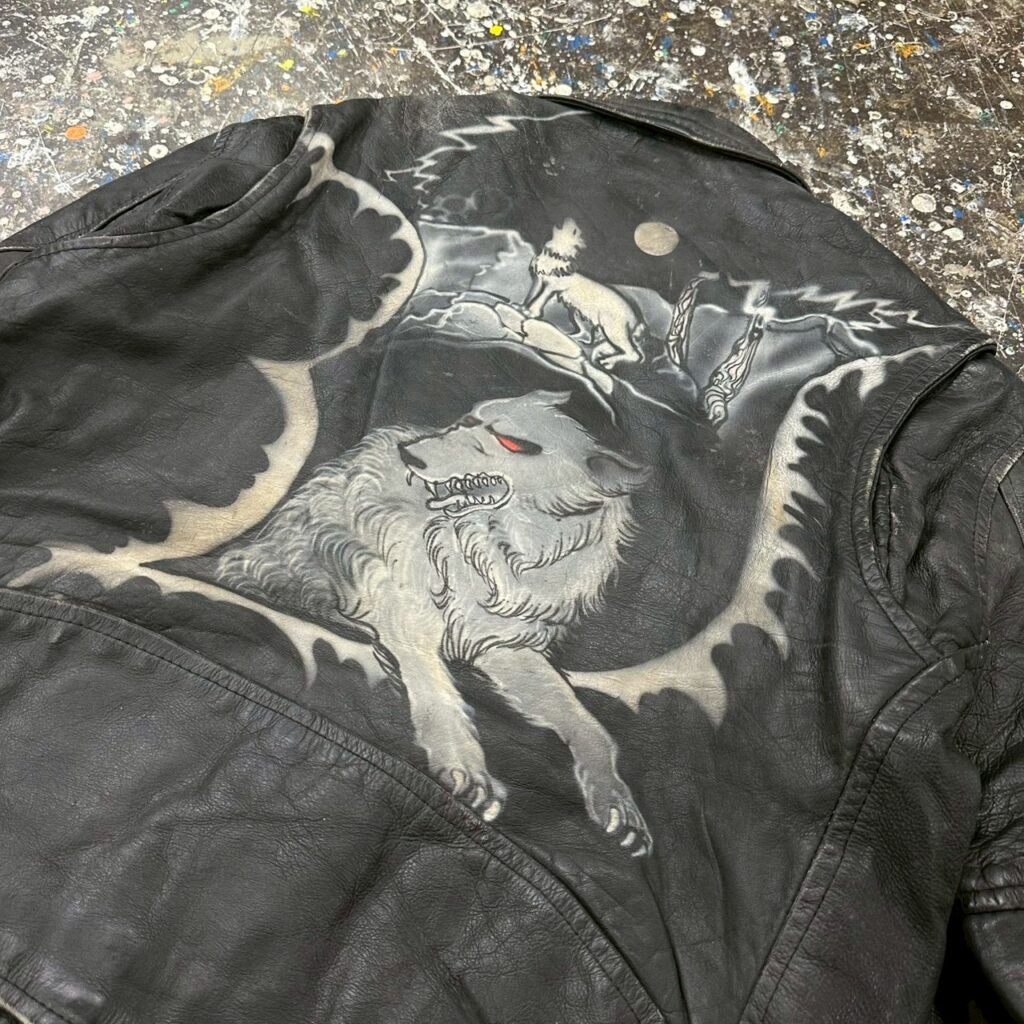 レザースウィング、レザーパンツなどなどエアブラシであまり見かけないであろう狼パターンのダブルライダースは一点物感満載!!