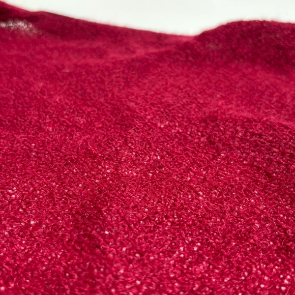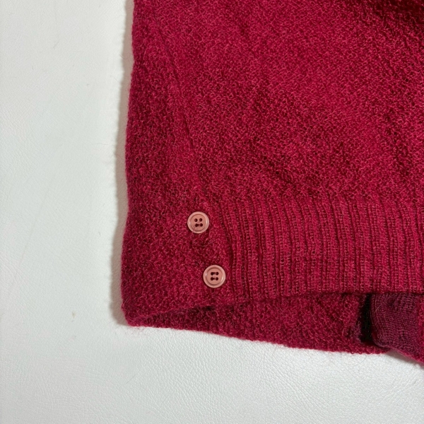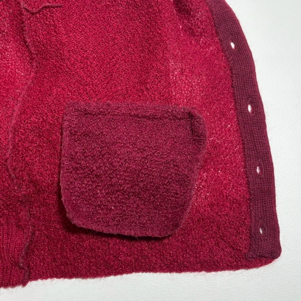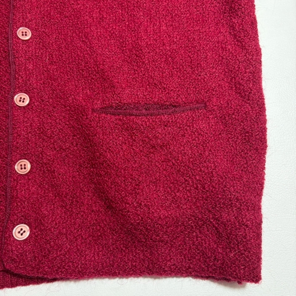 黒が混ざったような深い赤のモヘアカーディガン。