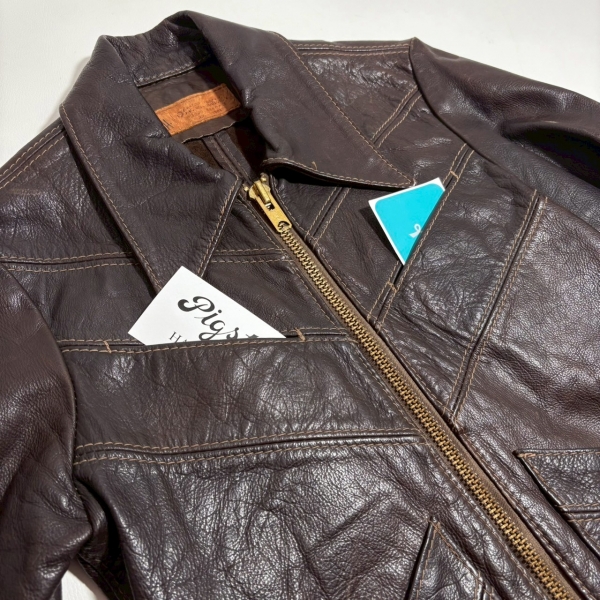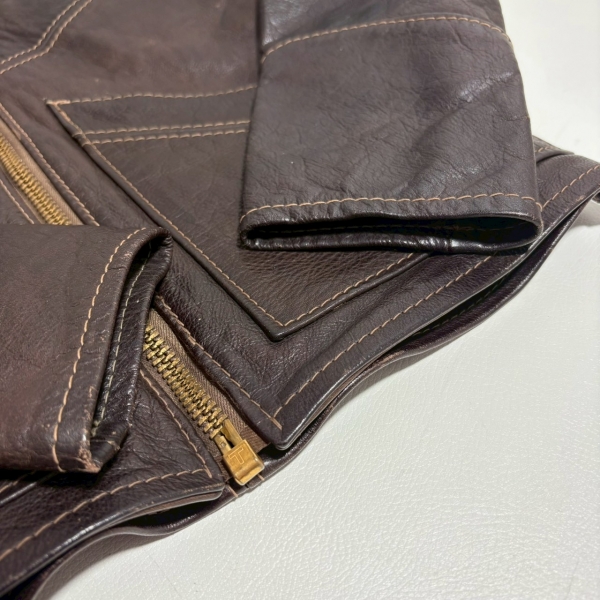 ブラウンレザーにステッチのデザインが光る一着!