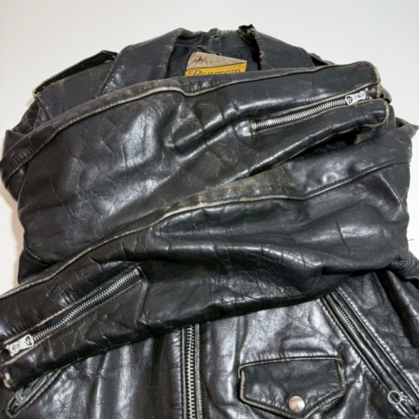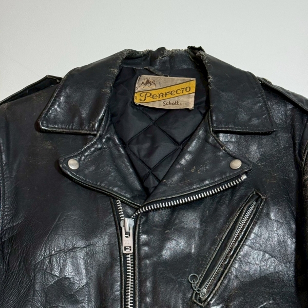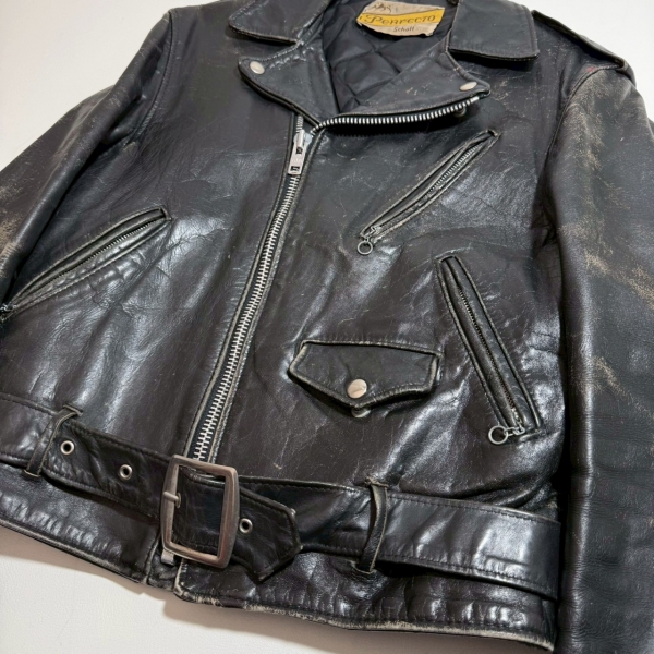 70年代初頭に付く薄タグ装備のショットダブルライダース。