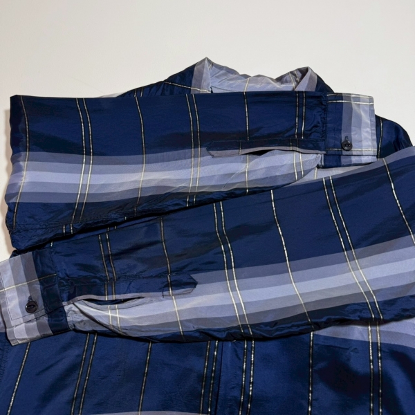 しっかり柄合わせのポケットに猫目ボタンとディテールも良し、