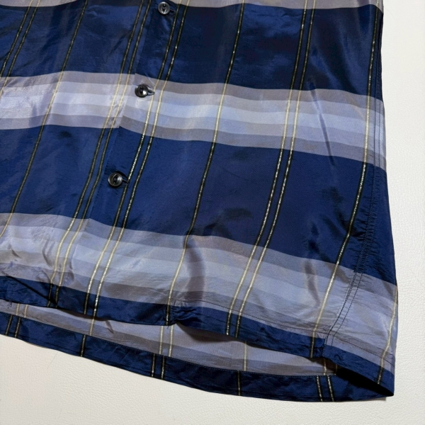 光沢のある生地感のオープンカラーシャツ。