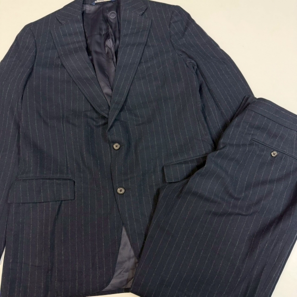 ウール地でチョークストライプ柄のセットアップ